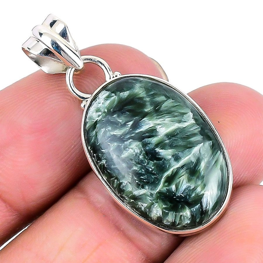 Seraphinite Gemstone 925 Solid Silver Daughters Day Art Deco New Pendant Jewelry