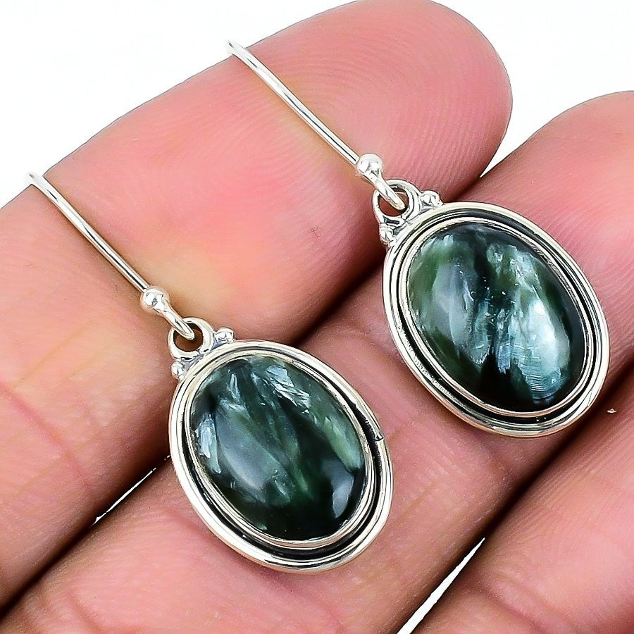 Seraphinite Gemstone 925 Sterling Silver Artisan Drop Daughter Earrings Jewelry