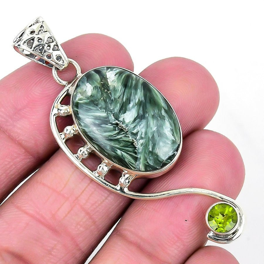 Seraphinite Gemstone 925 Sterling Silver Boho Channel Set New Pendant Jewelry