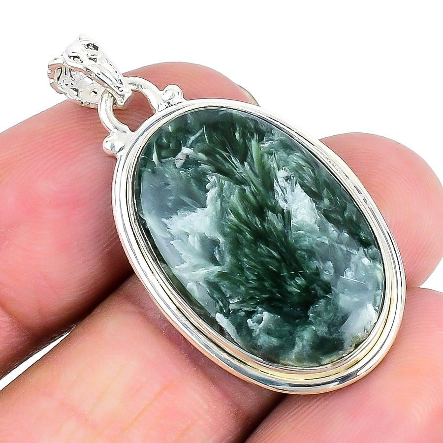 Seraphinite Gemstone Boho Sister Unique New Pendant Jewelry 925 Sterling Silver