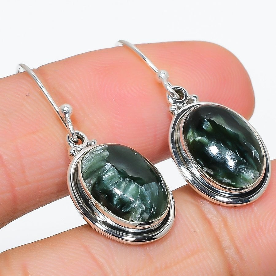 Seraphinite Gemstone Dangle Drop Hook New Earrings Jewelry 925 Sterling Silver