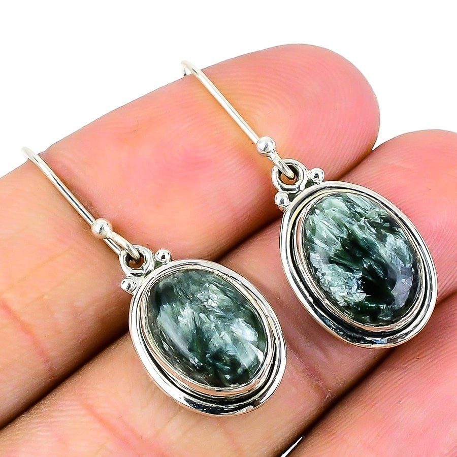 Seraphinite Gemstone Daughter Sisters Day New Dangle Earrings Jewelry 925 Silver