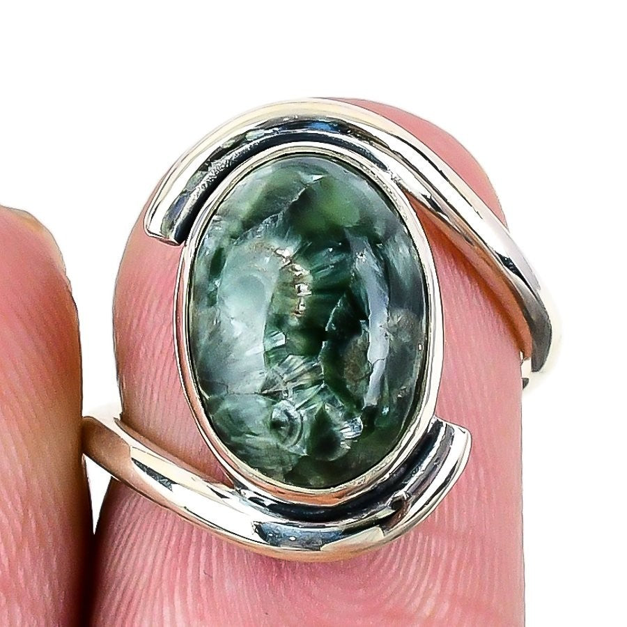 Seraphinite Gemstone Daughters Day Statement New Wife Ring 925 Solid Silver US 6