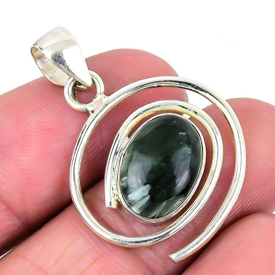 Seraphinite Gemstone Sister Channel Set Birthday Pendant Solid Sterling Silver