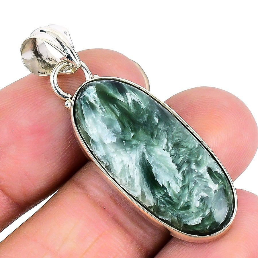 Seraphinite Gemstone Solid Silver Anniversary Daughters Day Wife Artisan Pendant