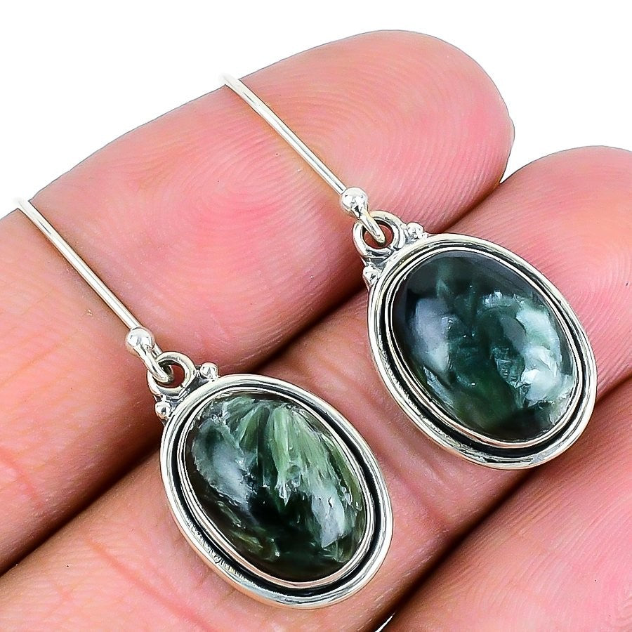 Elegant Seraphinite Stone 925 Sterling Silver Boho Stud in 9
