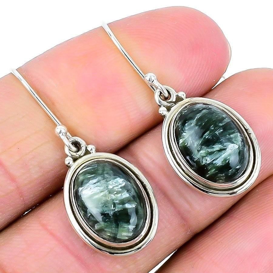 Elegant Seraphinite Stone 925 Sterling Silver Dangle Drop in