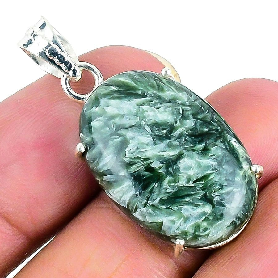 Seraphinite Stone 925 Sterling Silver Daughters Day Bezel Artisan Ethnic Pendant