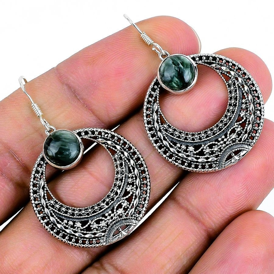 Seraphinite Stone Handcrafted Dangle Drop Engagement Earrings 925 Solid Silver