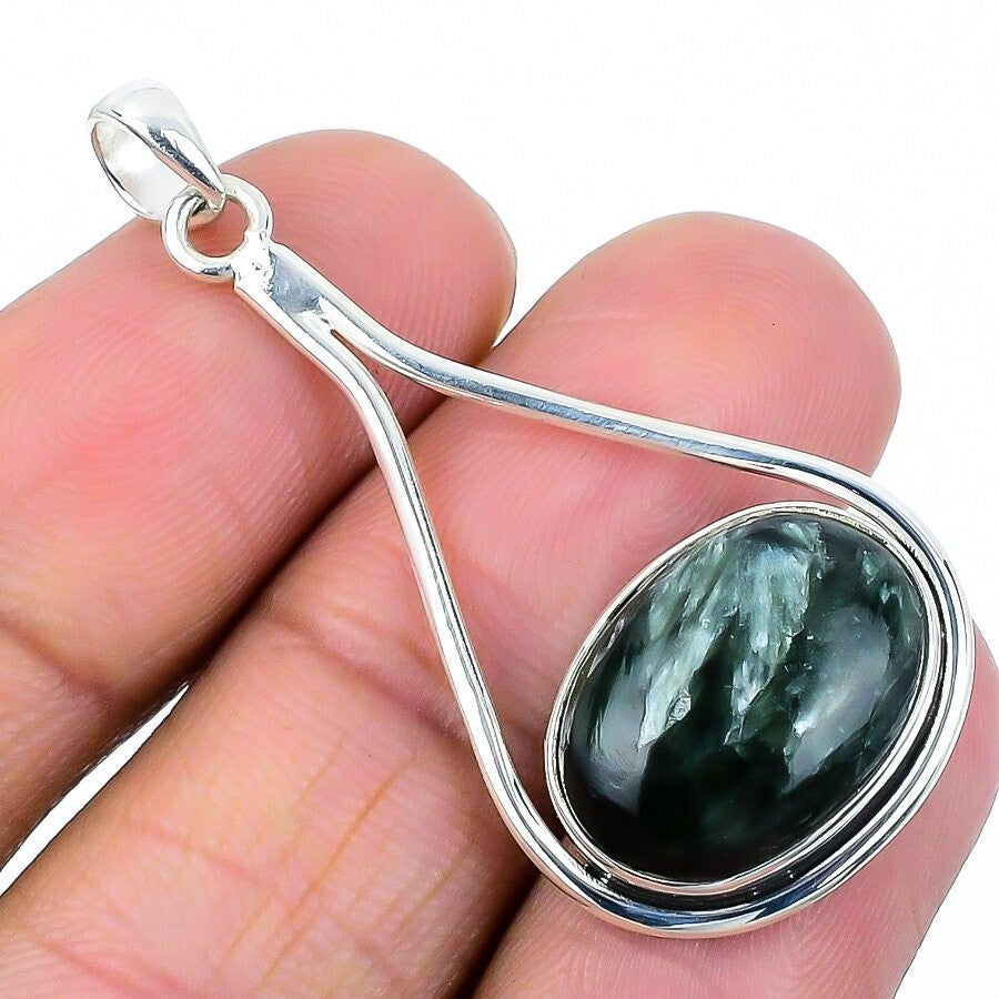 Seraphinite Stone Mothers day Handmade Handcrafted Pendant 925 Sterling Silver