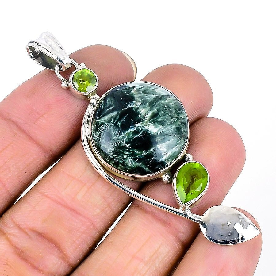 Seraphinite Stone Solid Silver Daughter Boho Handmade Birthday Wedding Pendant