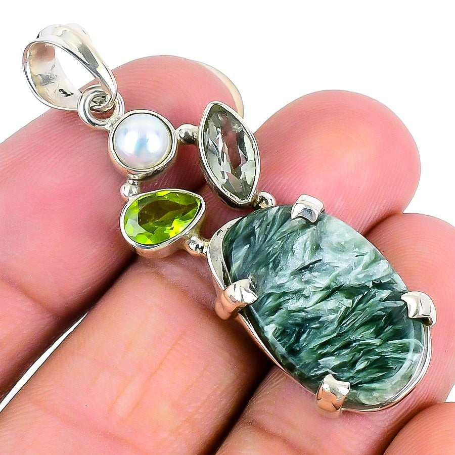 Seraphinite Stone Solid Silver Wife Bezel Anniversary Engagement Pendant Jewelry
