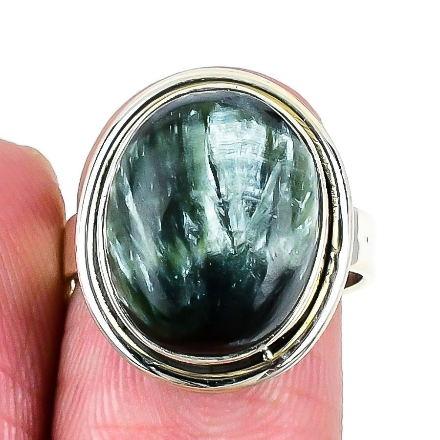 Seraphinite Stone Solid Sterling Silver Daughters Day Statement Ring Size 7.5