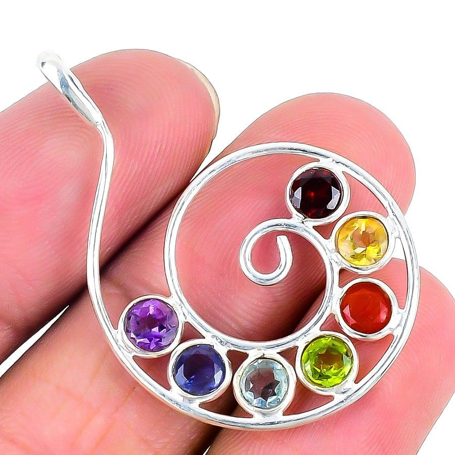 Seven Chakra Gemstone 925 Sterling Silver Handcrafted Sister New Pendant Jewelry