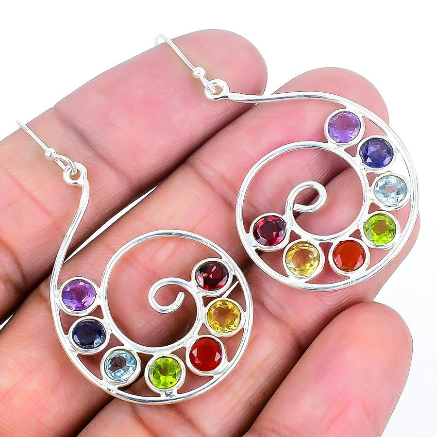 Seven Chakra Gemstone Gemstone Drop Dangle Friend Gift Earrings Sterling Silver