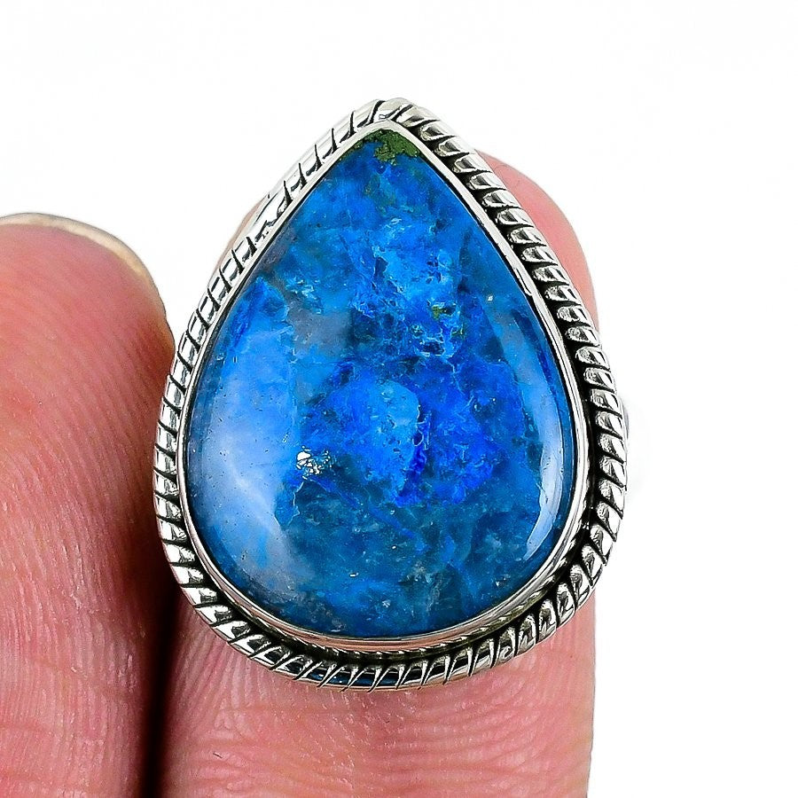 Shakkutatite Crysocolla Gemstone Solid Sterling Silver Statement Ring Jewelry