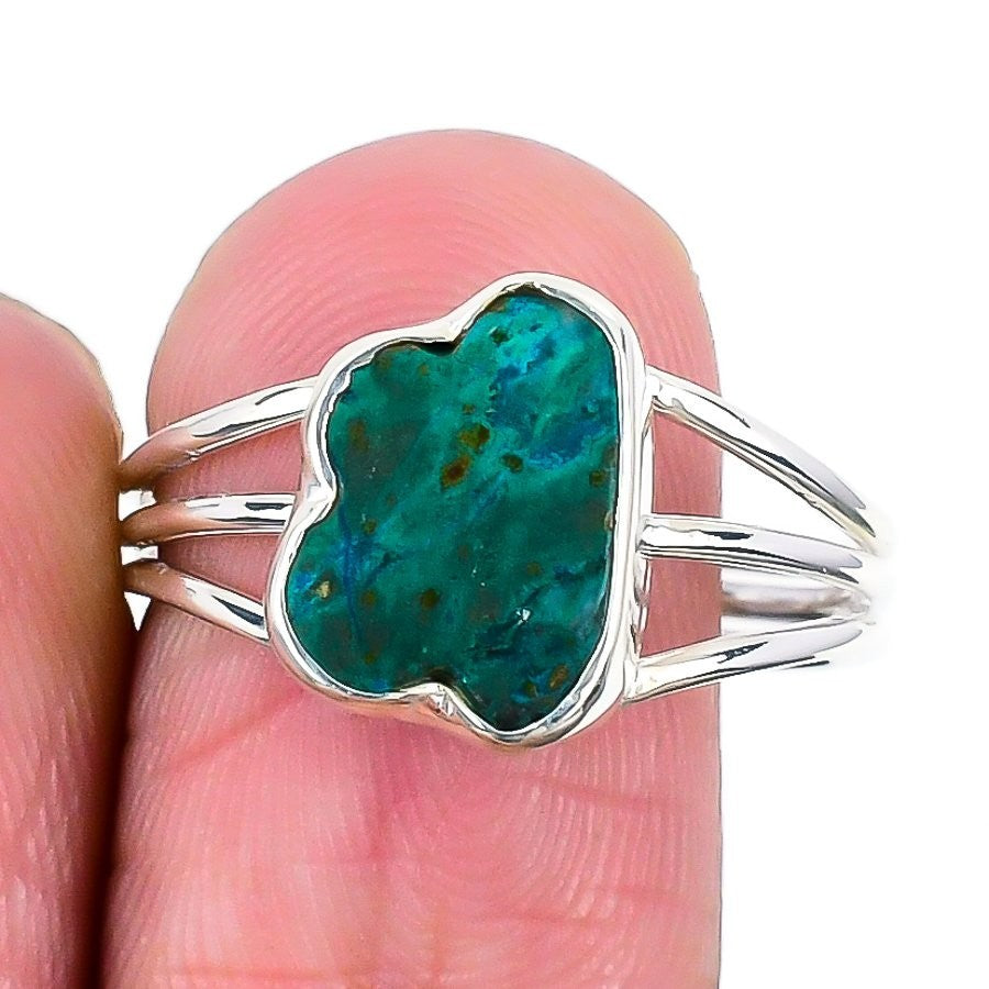 Shattuckite Crysocolla Stone 925 Solid Silver Cluster Wife Ring Jewelry Size 9.5
