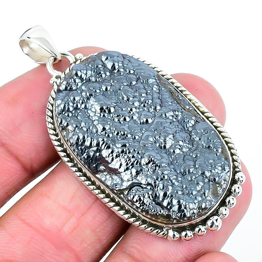 Shungite Stone Solid Silver Elegant Daughter Art Deco Engagement Wedding Pendant