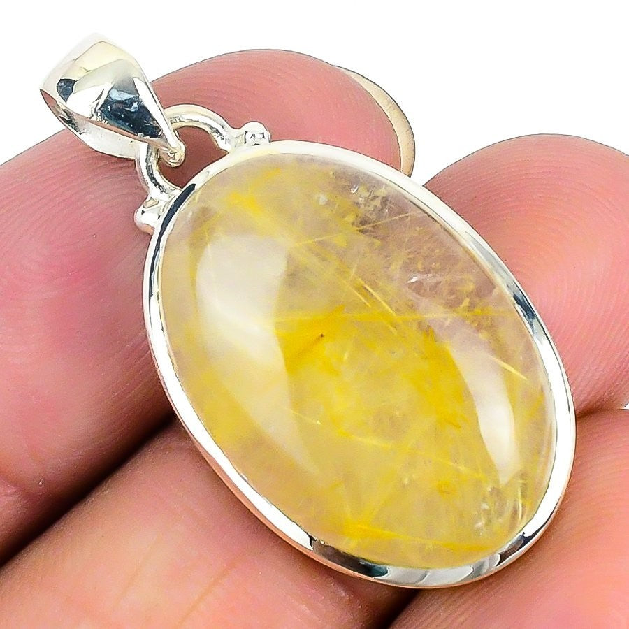 Sisters Day Deal Golden Rutile Stone 925 Silver Bezel Anniversary Trendy Pendant