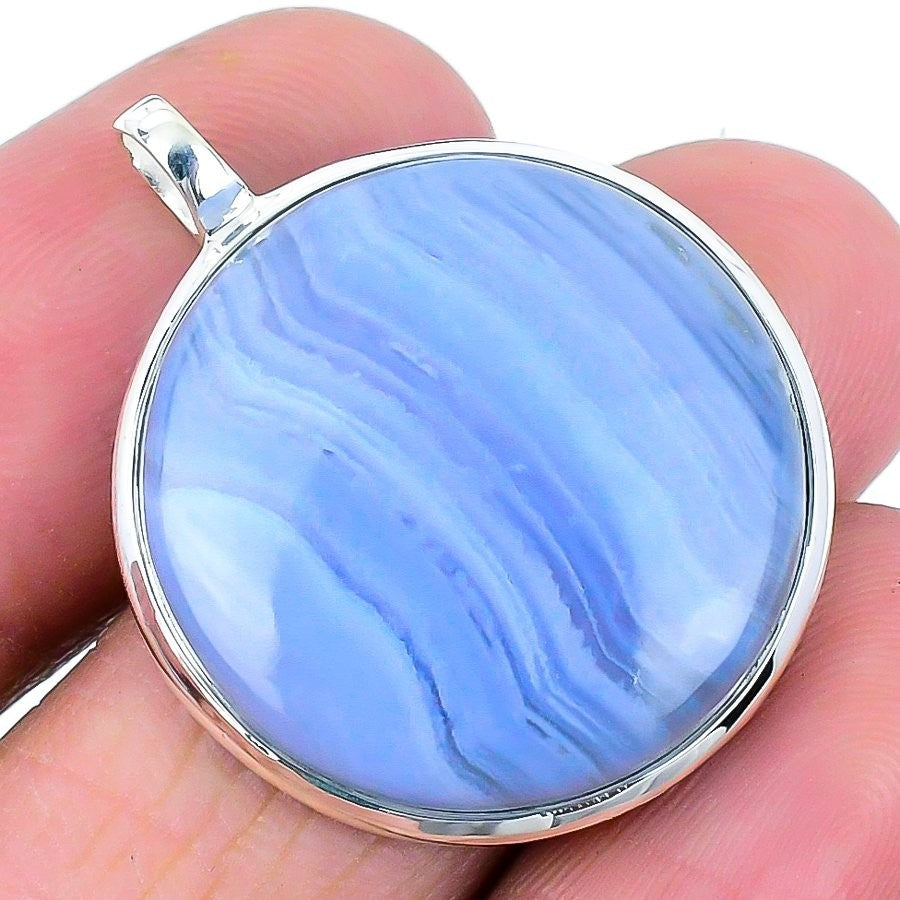 Sisters Day Deal Natural Blue Lace Agate Ethnic Pendant Jewelry 925 Solid Silver