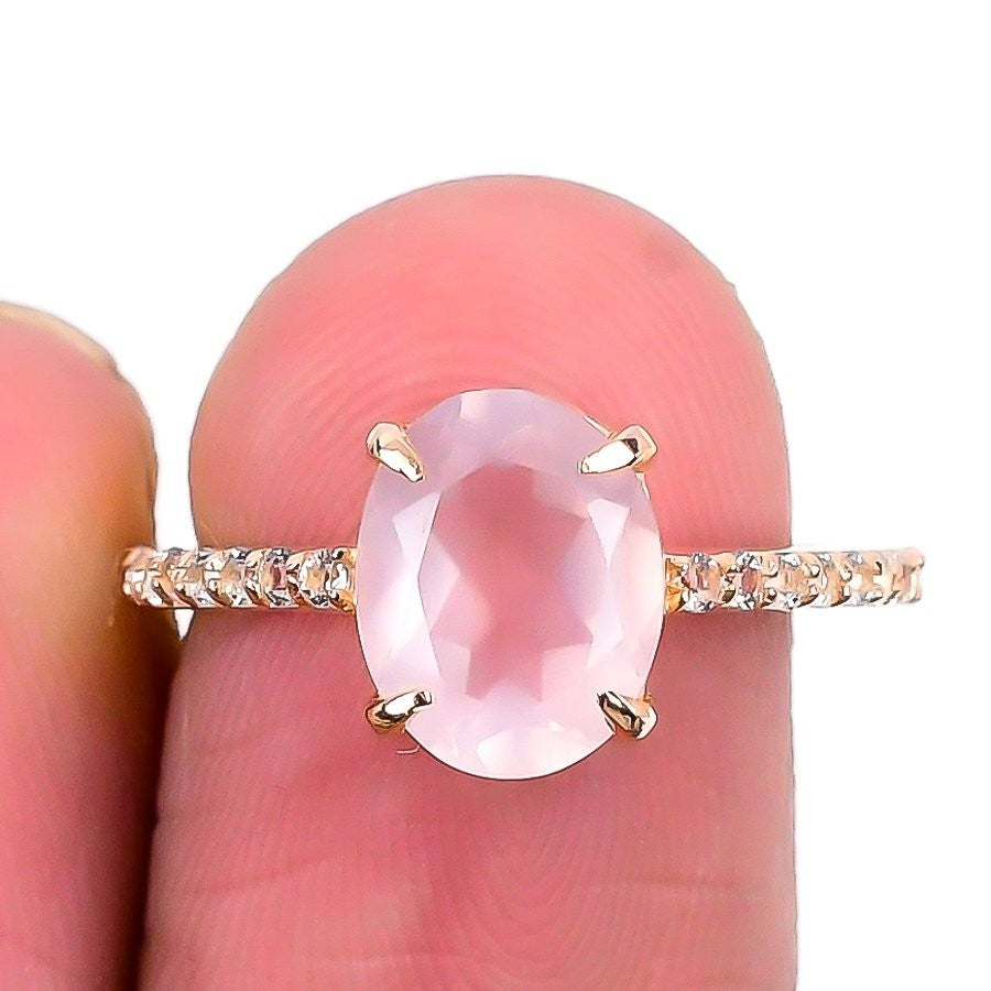 Sisters Day Deal Rose Quartz Stone Sterling Silver Unique Statement Ring US 6.5