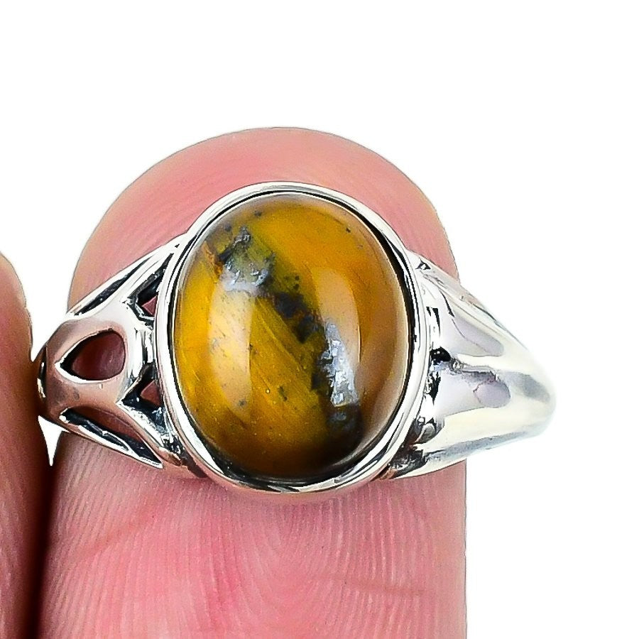 Sisters Day Deal Tiger Eye Stone 925 Silver Anniversary Statement Ring Size 8