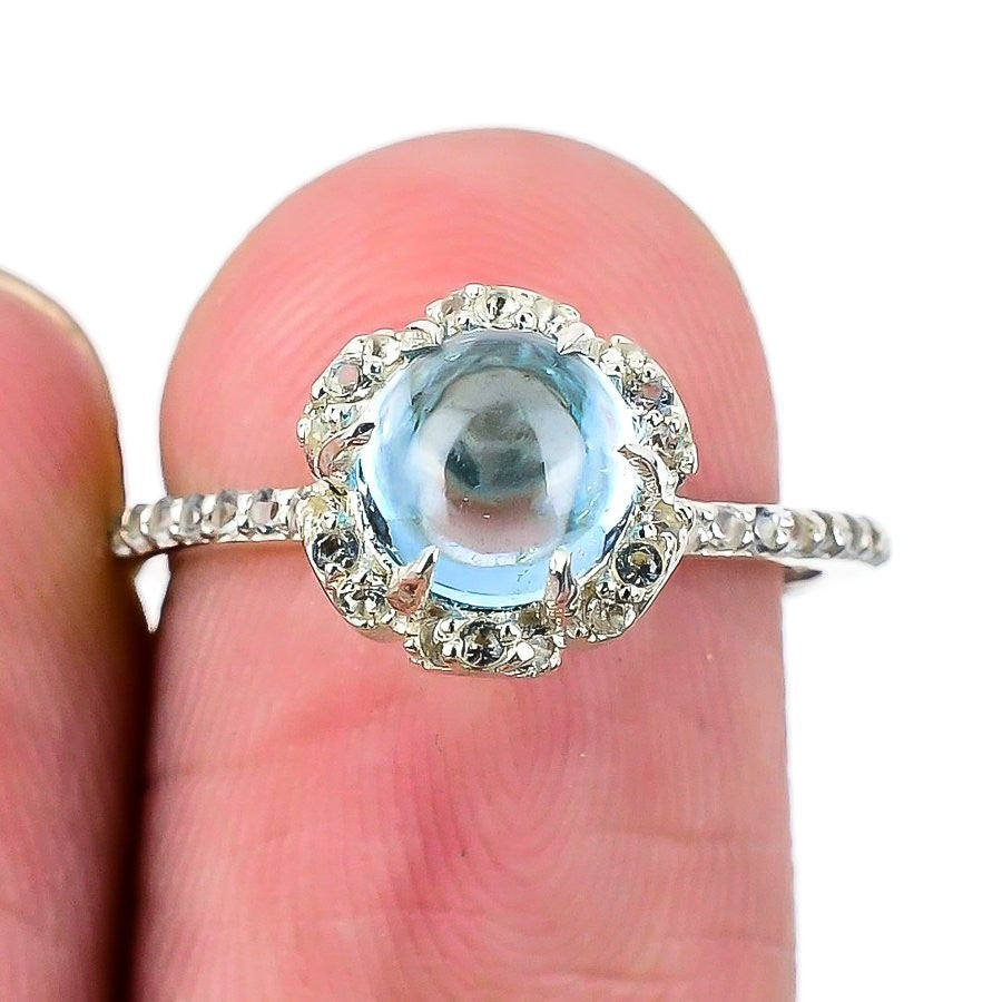 Sisters Day Sale Natural Aquamarine Sterling Silver Statement Boho New Ring US 7
