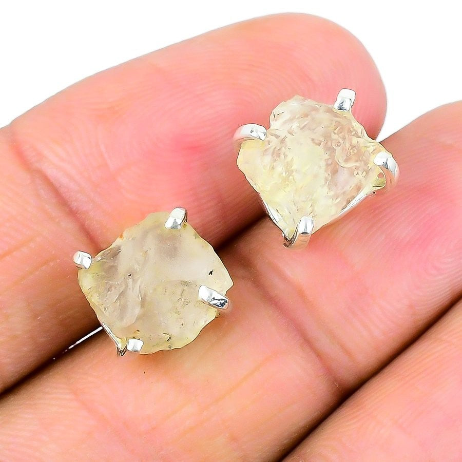 Sisters Day Sale Natural Libyan Glass Solid Silver Elegant Stud Wedding Earrings