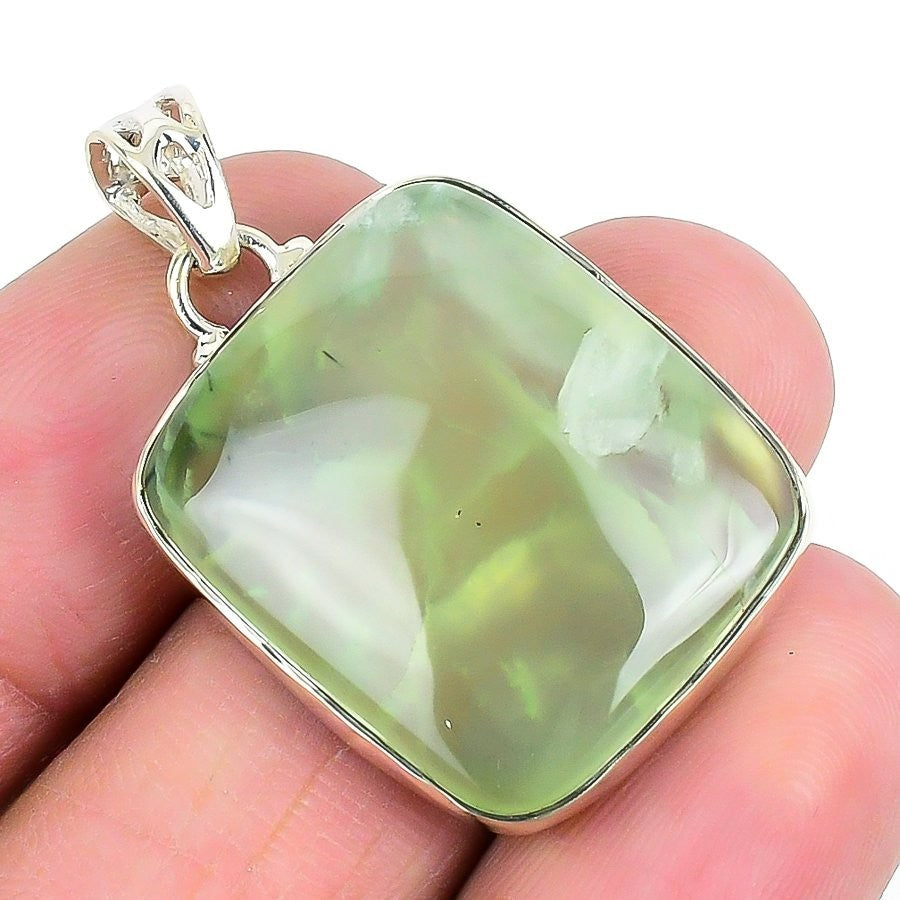 Sisters Day Sale Prehnite Stone 925 Sterling Silver Bezel Anniversary Pendant