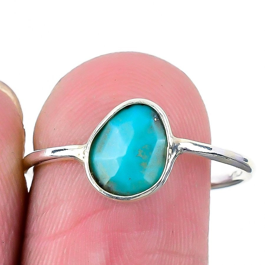 Sleeping Turquoise Gemstone 925 Silver Birthday Cluster Wife Ring Jewelry Size 8