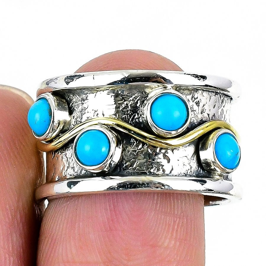 Sleeping Turquoise Gemstone 925 Solid Silver Ethnic Statement New Ring Size 8.5