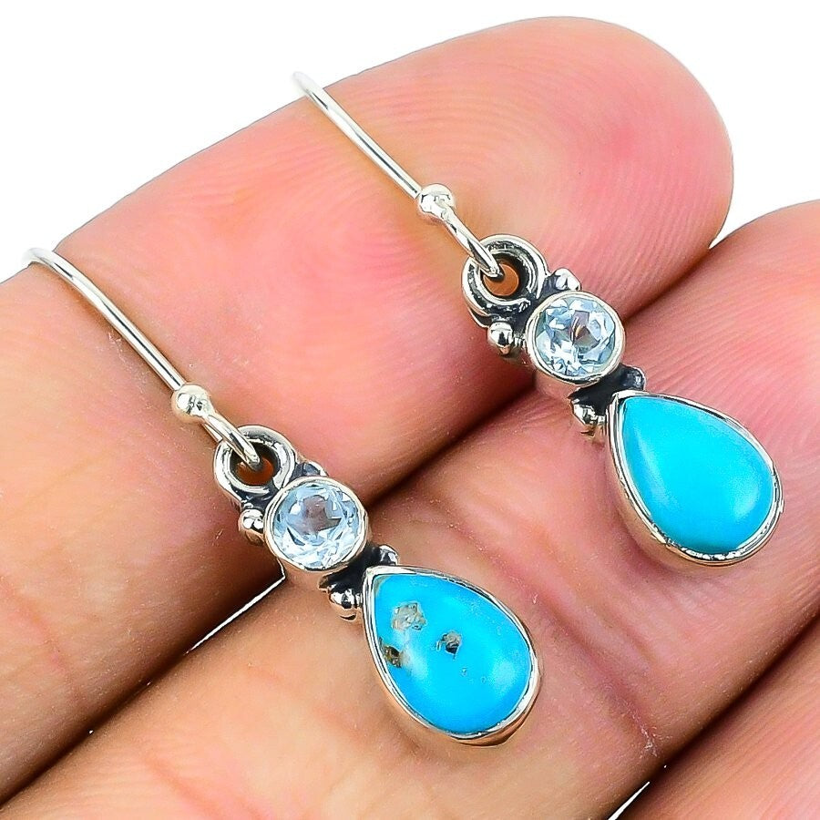 Sleeping Turquoise Gemstone 925 Solid Silver Handcrafted Drop Earrings Jewelry