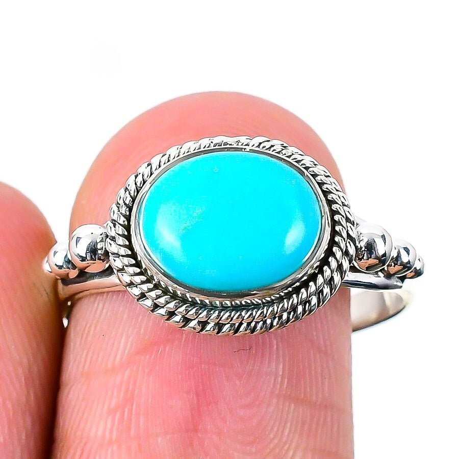 Sleeping Turquoise Gemstone Solid Silver Sister Statement Unique New Ring Size 9