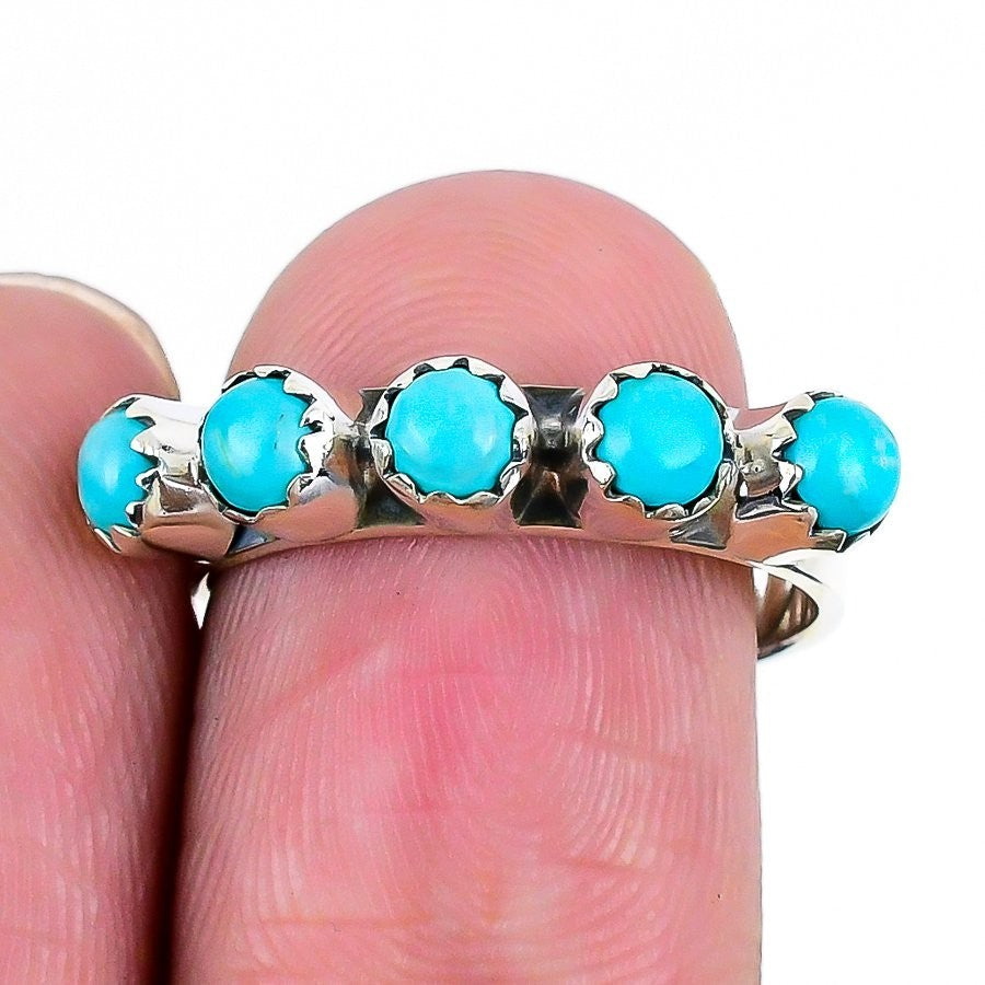 Sleeping Turquoise Stone 925 Silver Channel Set Statement Friendship Day Ring