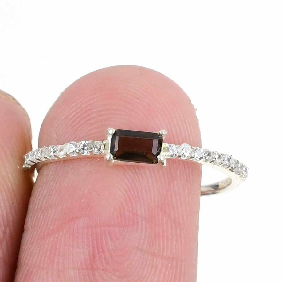Smokey Stone 925 Sterling Silver Wedding New Cluster Daughters Day Ring Jewelry