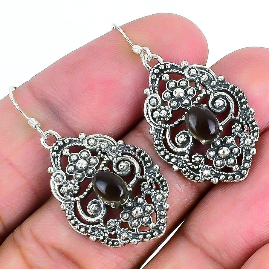 Smoky Quartz Gemstone 925 Sterling Silver Unique Dangle Drop Hook Wife Earrings