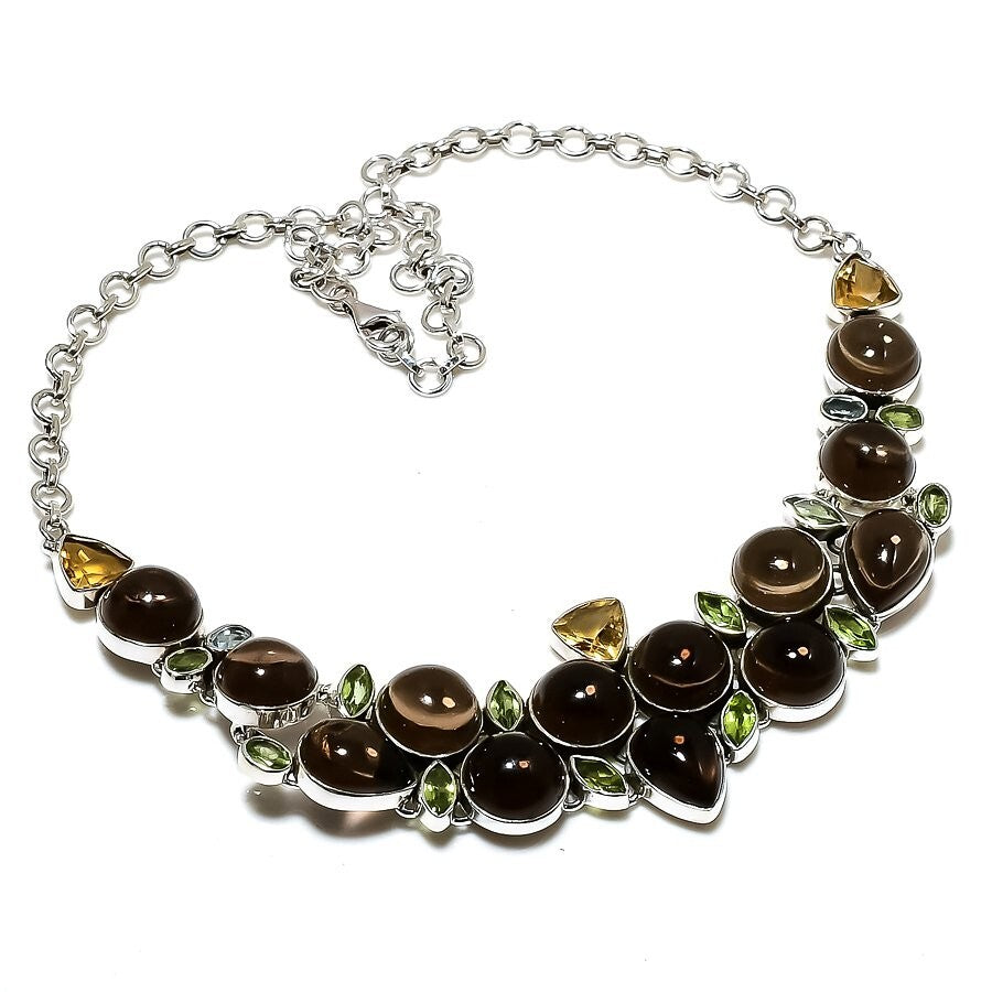 Smoky Quartz Gemstone Solid Silver Channel Set New Handmade Chain Hook Necklace