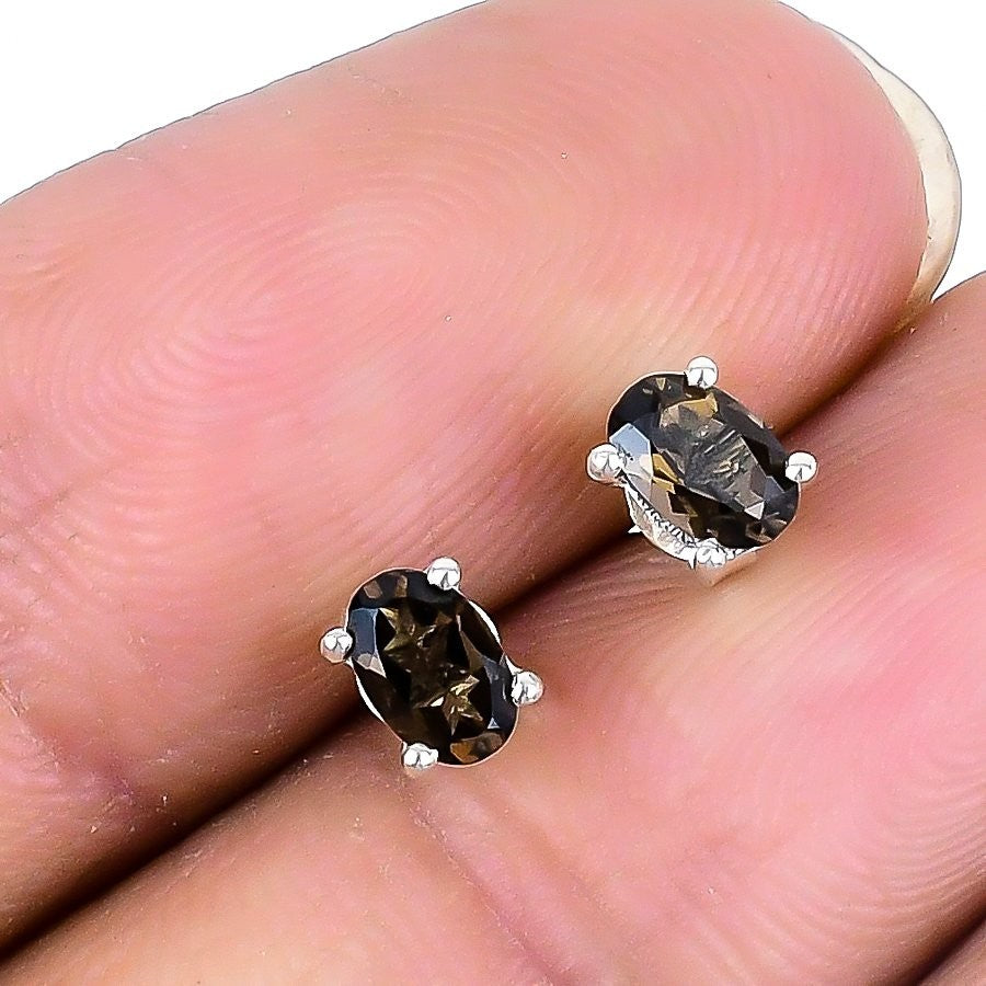 Smoky Topaz Faceted Gemstone 925 Solid Silver Leverback New Stud Mother Earrings