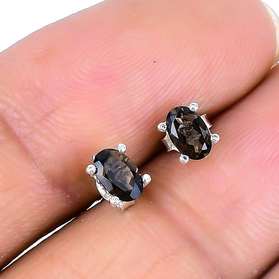 Elegant Smoky Topaz Faceted Stone Mother Stud Post in 925 St