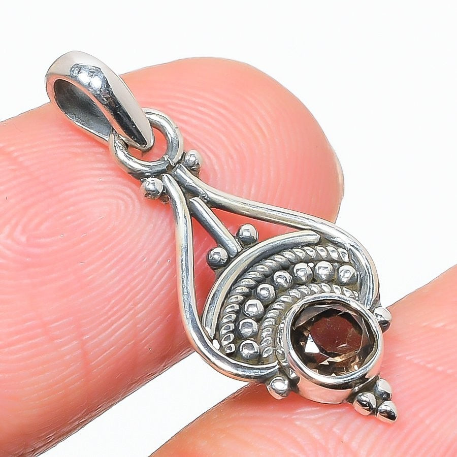 Smoky Topaz Gemstone Solid Silver Sister Art Deco Daughter Gift Pendant Jewelry