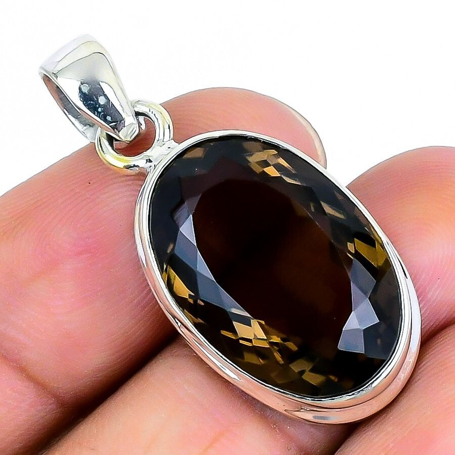 Smoky Topaz Gemstone Sterling Silver Mother Boho Handmade Handcrafted Pendant