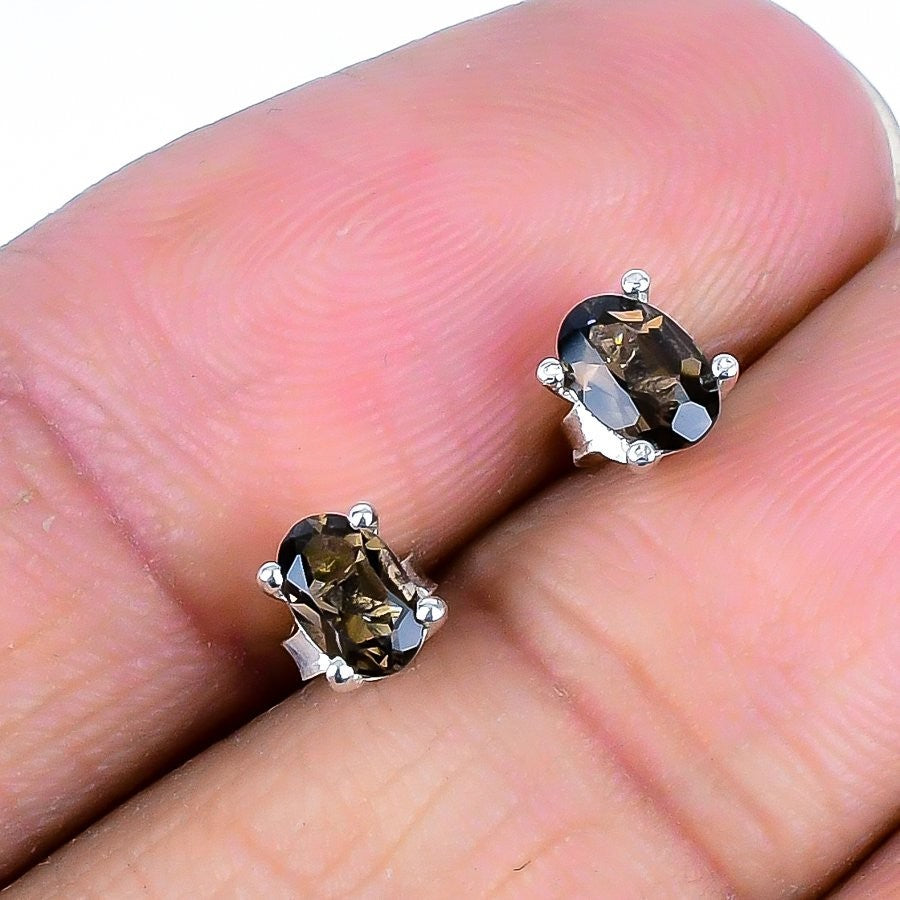 Smoky Topaz Gemstone Sterling Silver Sister Stud Post Trendy Wedding Earrings