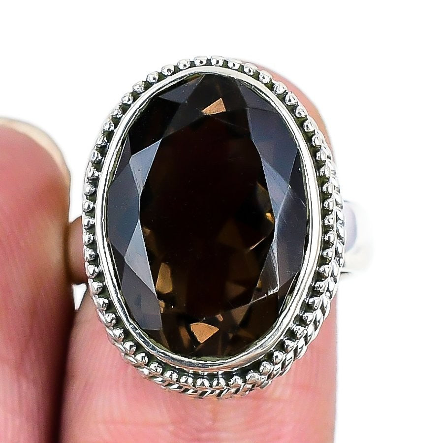Smoky Topaz Gemstone Sterling Silver Wife Statement Daughter Gift Boho Ring US 7