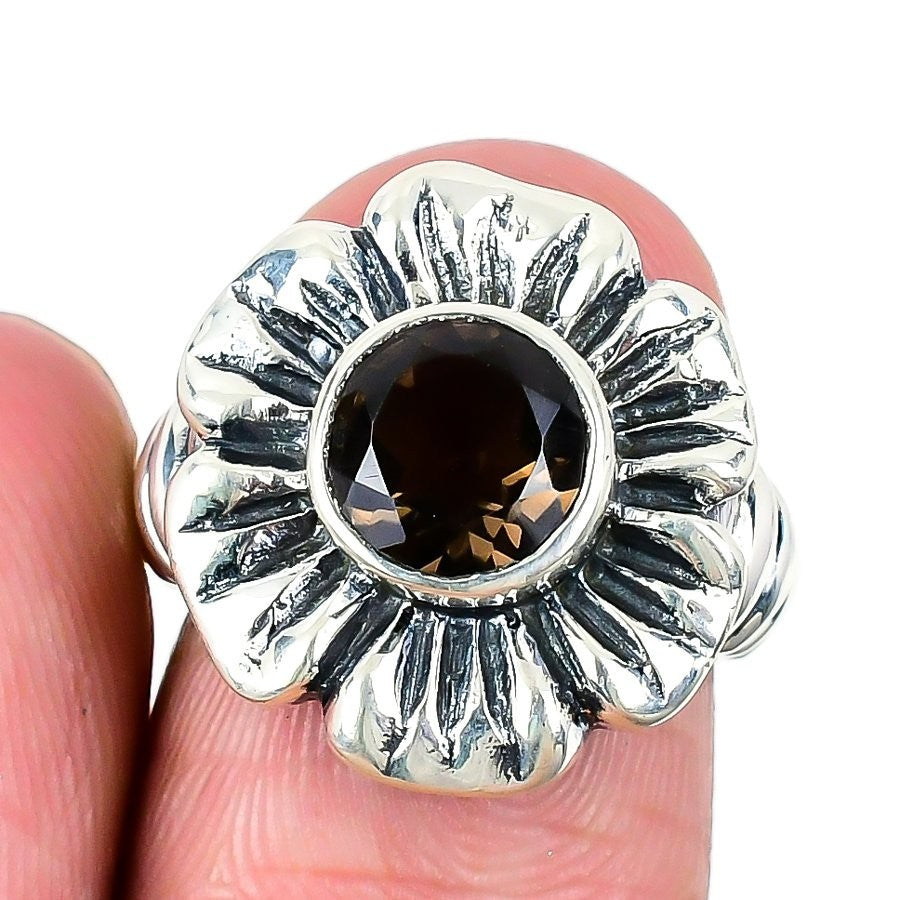 Smoky Topaz Gemstone Unique Art Deco Statement Ring Jewelry Solid Silver US 6