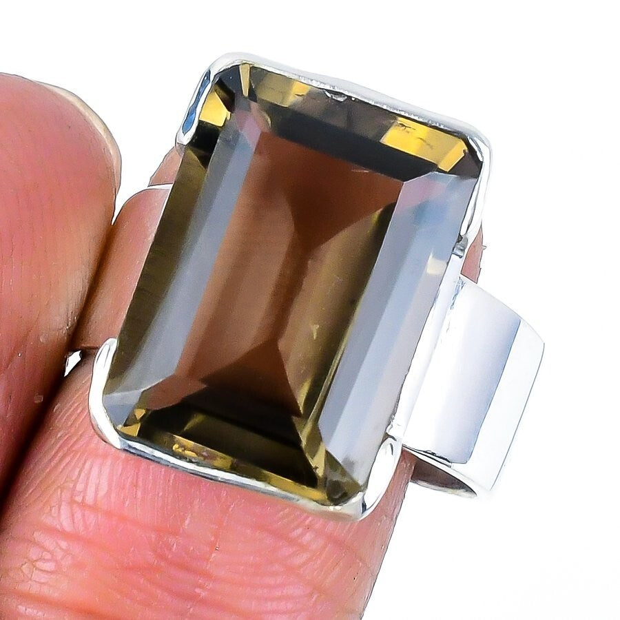Smoky Topaz Stone 925 Sterling Silver Mother Statement Anniversary Ring Size 10