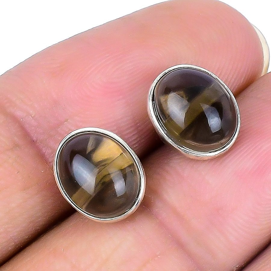 Elegant Smoky Topaz Stone Birthday Stud Sister Art in 925 St