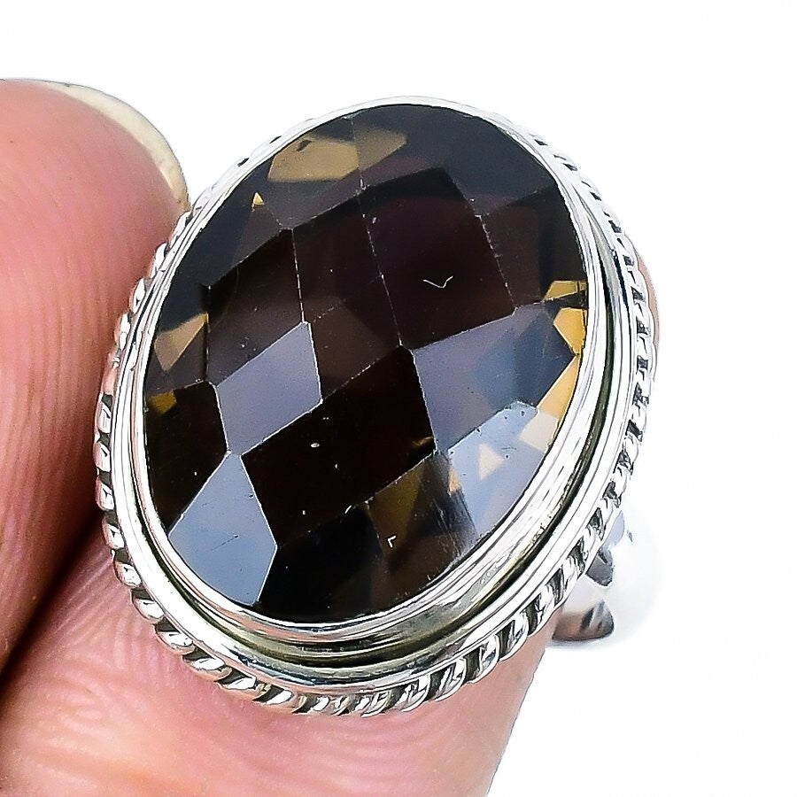 Smoky Topaz Stone Boho Statement Birthday Trendy Ring Jewelry 925 Solid Silver