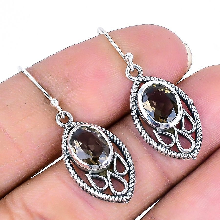 Smoky Topaz Stone Solid Silver Daughter Ethnic Unique Wedding Dangling Earrings