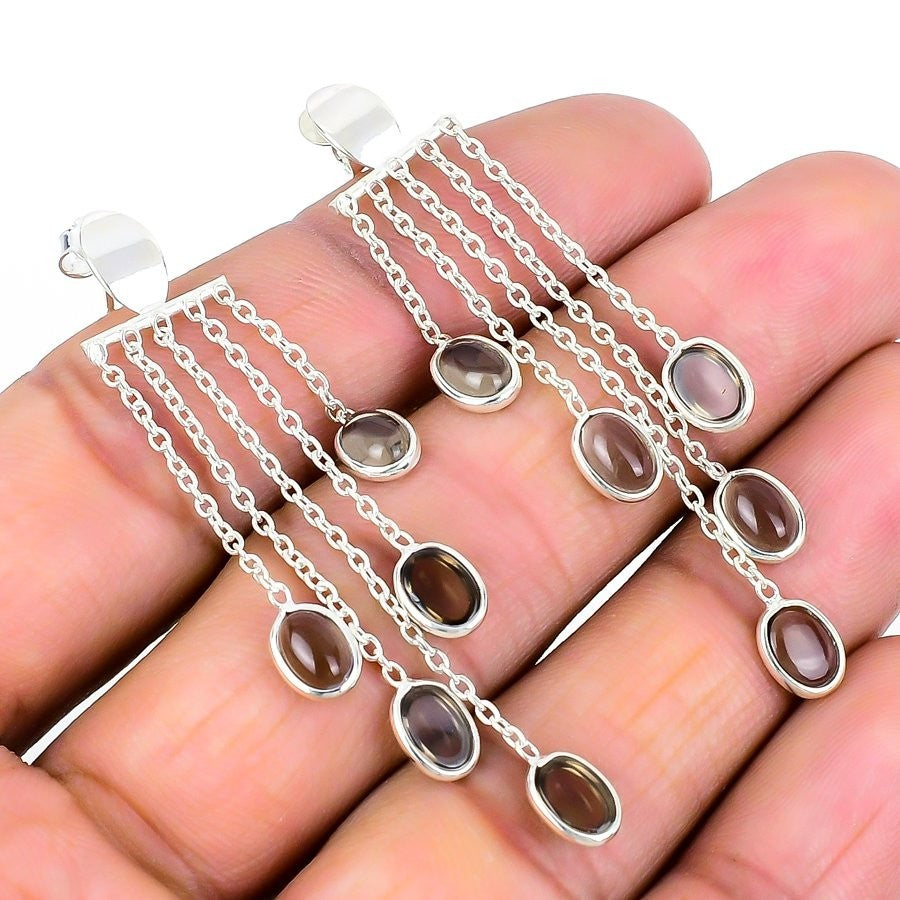 Elegant Smoky Topaz Stone Solid Silver Drop Hook in 925 Ster
