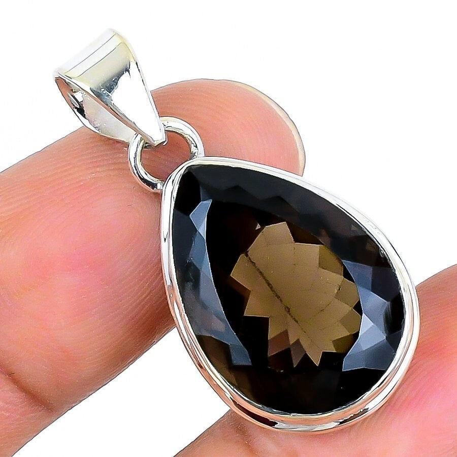 Smoky Topaz Stone Sterling Silver Handcrafted Art Deco Unique Ethnic New Pendant